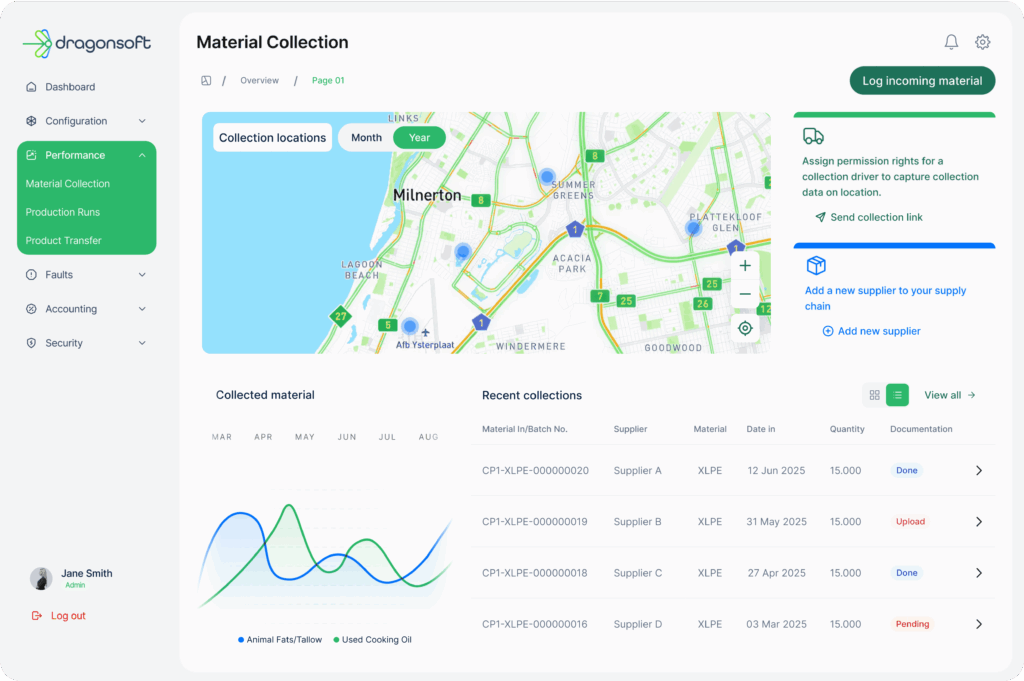 Log materials, monitor inventory, capture production runs, and follow transfers with full transparency. DragonSoft digitises the entire chain of custody, giving you unmatched traceability.