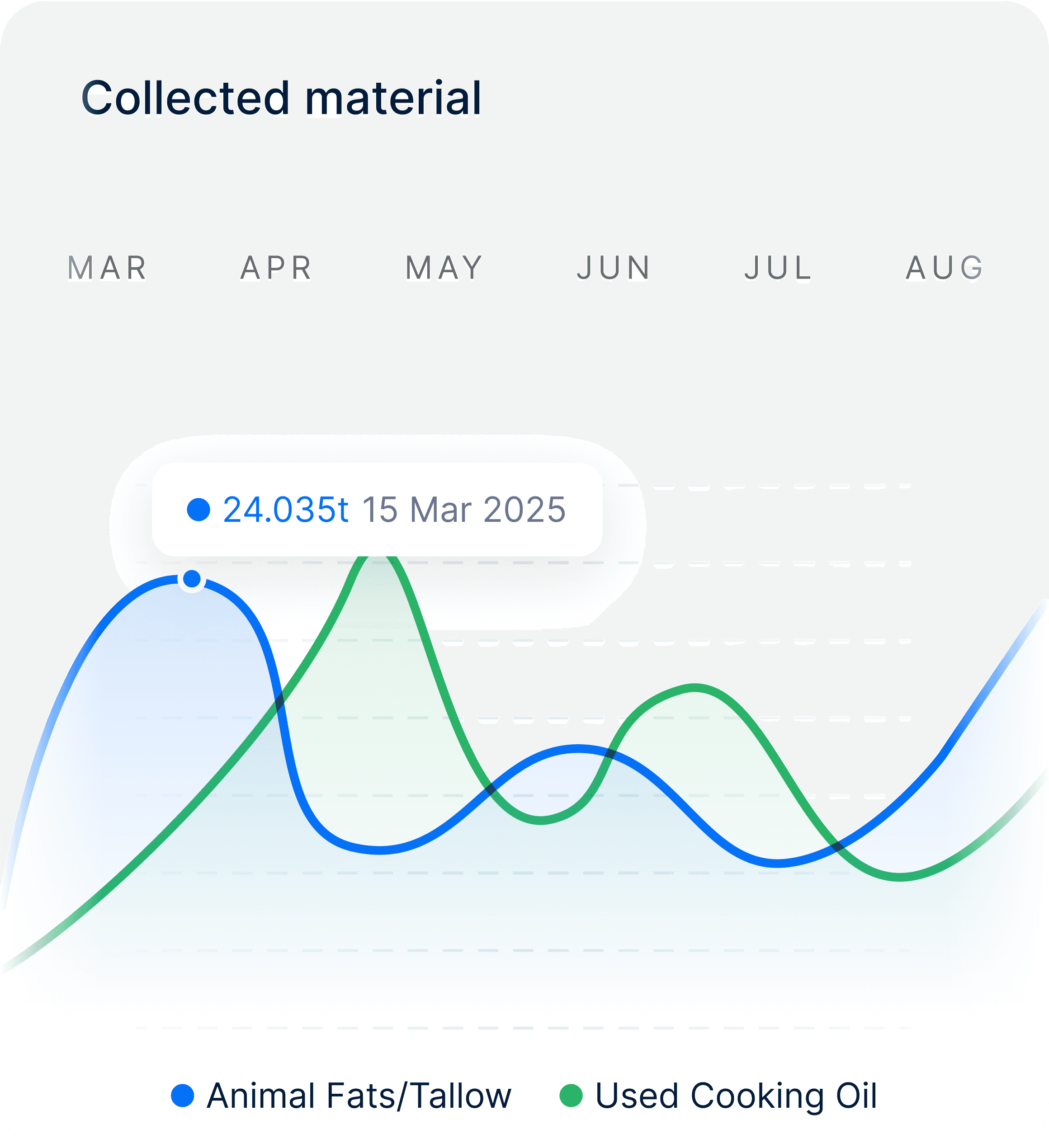 We digitise the chain of custody for biofuels and sustainable materials. This ensures that every step is verifiable, secure, and trusted, from waste to wing, waste to wheel, and waste to wave.